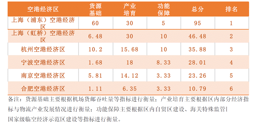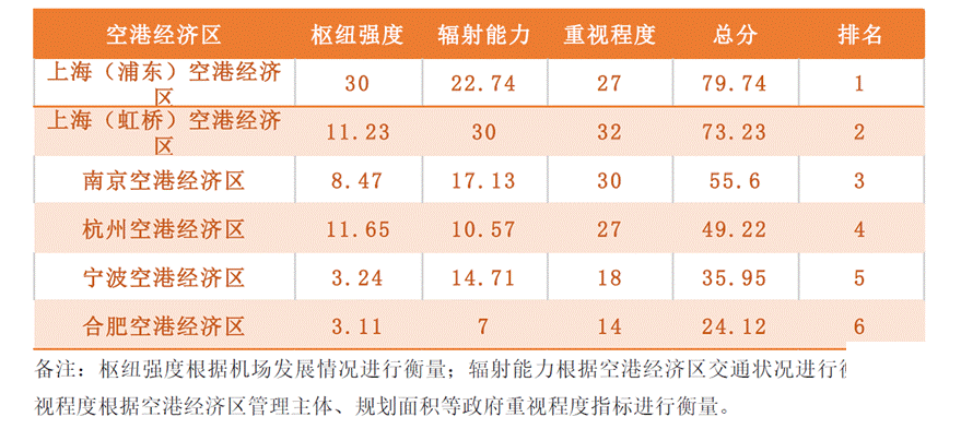 長三角空港經濟區航空物流競爭力排行榜