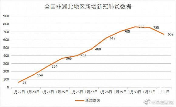據衛健委統計數據計算,2月1日全國非湖北地區新增新冠肺炎確診病例為669例,相比1月31日,少增86例,這已經是連續第二日減少。