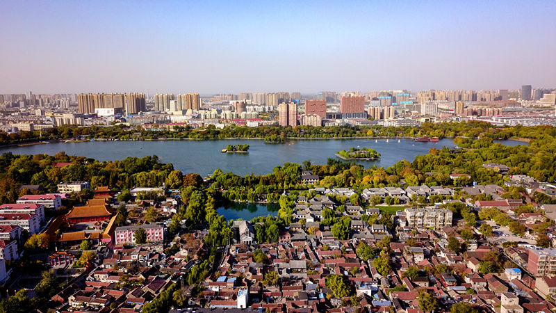 這是11月2日拍攝的濟南老城區(無人機照片)。新華社記者 郭緒雷 攝
