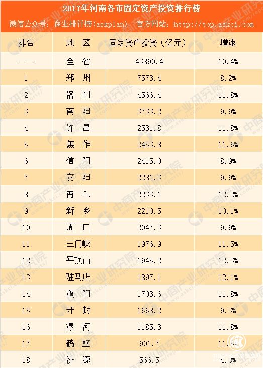 從增速來看,10城固定資產投資增速超全省平均水平,其中平頂山、商丘、駐馬店固定資產投資增速超12%,分別為12.3%、12.2%、12.1%。南陽、安陽、周口、開封、信陽、鄭州、濟源固定資產投資增速不足10%,其中濟源增速最低,僅4.0%。