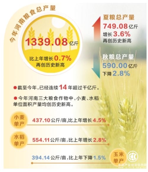 “中原糧倉”河南今年糧食生產再獲豐收。12月10日,國家統計局河南調查總隊發布數據,經國家統計局核準,今年河南糧食總產量1339.08億斤,比上年增長0.7%,再創歷史新高。