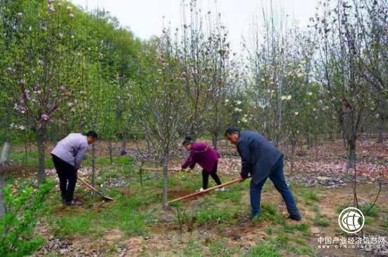 山頭村的村民正在錦天園林公司的苗圃里勞作