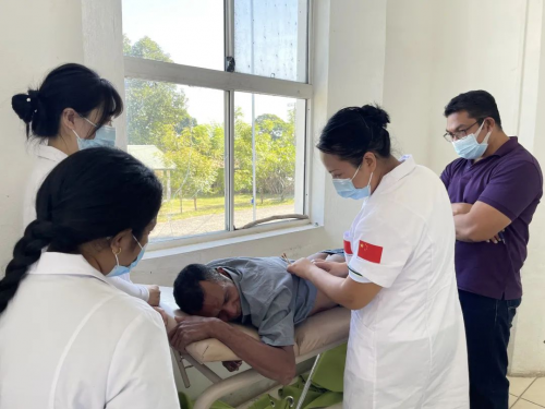 當日,除向就診患者免費發放了所需藥品外,100余人接受了義診服務。其中,外科診療小組現場完成了良性腫瘤切除1例。中醫專家何玲娜主任醫師的傳統中醫松解治療和拔火罐治療的神奇特效在東醫療衛生人員和患者中引起熱烈反響,大家紛紛為中國醫療隊的熱心服務和高超的醫療水平點贊。