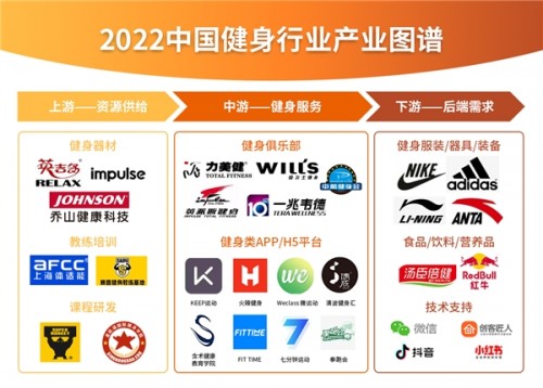 在上游端,包含健身器械、教練培訓、課程研發等不同領域的企業,共同滿足民眾健身資源供給;