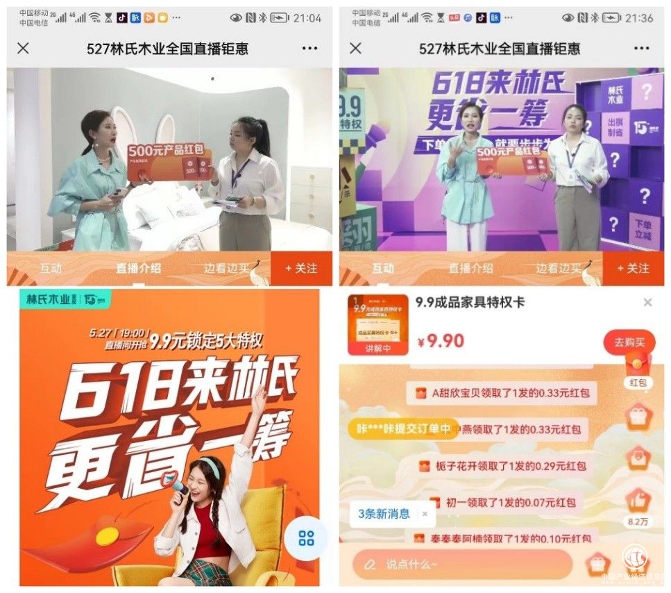 5月27日的直播安排有所不同,林氏木業發動了自身門店矩陣優勢,聯動全國合作經銷商,透過各大門店大力度導購引流,林氏木業匯聚了全國各地對直播有興趣的目標消費者進一步擴大直播活動賦能范圍,在618來臨之際,將商品的曝光量推向高潮。