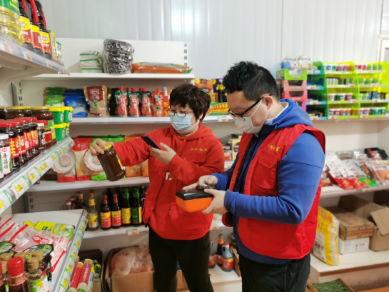 圖為黨員志愿者幫助農村零售戶整理非煙柜臺商品,助力鄉村振興