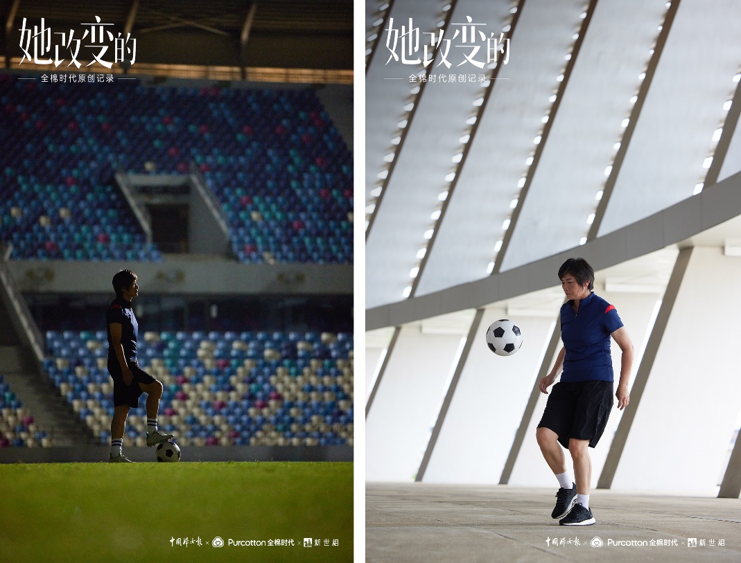 5月31日,全棉時代聯合中國婦女報、新世相共同推出原創記錄系列「她改變的」,聚焦女足教練水慶霞,講述她帶來改變的故事。片頭用一朵棉花的綻放,寓意溫柔而堅韌的女性力量。該片一改常規紀錄片的拍攝方式,引入業內成熟紀錄片的操作手法,給觀眾帶來沉浸式的大片體驗。同時,全棉時代特邀“中國最好的肖像攝影師”肖全,為水慶霞拍攝了充滿態度和故事感的人物海報。