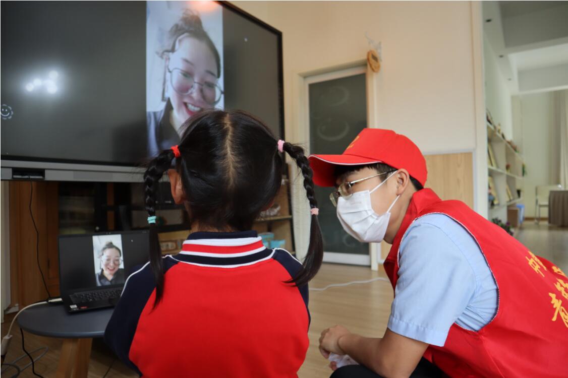活動現場,來自“蒲公英”志愿服務隊的隊員們化身“愛心父母”,與幼兒園孩子一起閱讀繪本、畫畫;在幼兒園老師的引導下,孩子們還爭相與自己的父母進行視頻連線。連線過程中,汶川縣映秀鎮副鎮長王亞與孩子父母們進行了親切交流,囑咐他們在外工作時要注意安全,也要經常與自己孩子溝通,注重家庭教育。當父母們透過視頻連線看到自己孩子時,眼眶瞬間濕潤了。