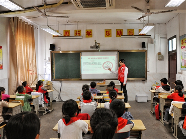 圖為遂昌縣煙草專賣局“香溢”志愿者為遂昌縣王村口鎮中心小學學生上普法課。巫曉俊攝