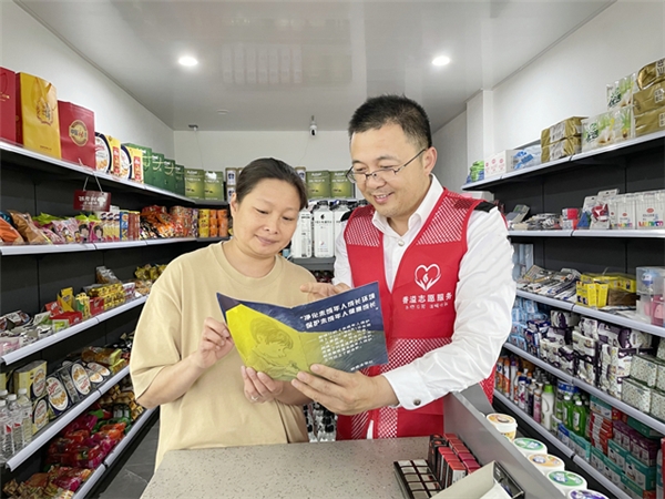 圖為遂昌縣煙草專賣局“香溢”志愿者向零售客戶講解《未成年人保護法》。巫曉俊攝