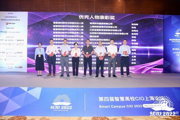 圖:鴻合科技旗下愛課堂韓艷(左四)獲頒智慧高校數字化轉型優秀人物獎