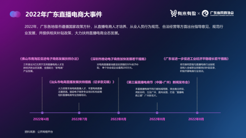 擁有豐富商業資源的廣東也積極響應國家政策方針,從直播電商人才培養、從業人員行為規范、合法經營等方面出臺指導意見,規范行業發展,并提供相關補貼政策,大力扶持直播電商業態發展。