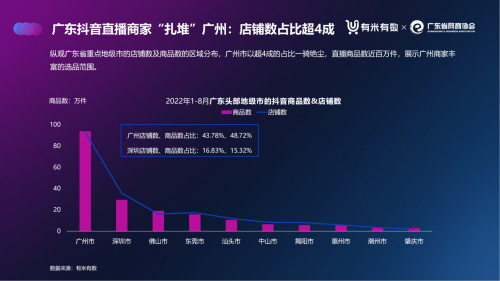 隨著抖音直播電商影響力深入產業帶,廣州、深圳、汕頭等地的服飾及美妝產業帶正在成為廣東直播電商的重要力量。