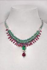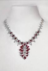 這件作品延續卡地亞混合多種造型的設計手法,完全基于寶石本身構建結構,利用寶石的不同形狀,將一組28顆產自莫桑比克的風箏形紅寶石與大量六邊形、梨形、方形及明亮式切割鉆石組合搭配。艷粉色和鉆石的純粹光芒營造鮮明對比,精心排列之余展現平衡的美感。