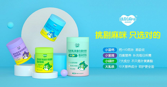 目前,挑剔麻咪旗下共有四款產品,分別是:以寶寶成長期間易缺乏鋅、鐵、維生素為痛點的挑剔麻咪酵母富鋅多種維生素凝膠糖果;以缺鈣、鈣吸收不達標、成長發育受阻為痛點的挑剔麻咪海藻高鈣維生素D凝膠糖果;以缺乏乳鐵蛋白等免疫因子為痛點的挑剔麻咪乳鐵乳清蛋白復合粉固體飲料;以用眼過度、保護眼部發育為痛點的挑剔麻咪藍莓蝦青素葉黃素酯凝膠糖果。四款產品圍繞寶媽對于寶寶成長期的常見訴求,以幫助寶寶均衡補充營養、維持日常所需為出發點,形成了互補閉合的產品矩陣。