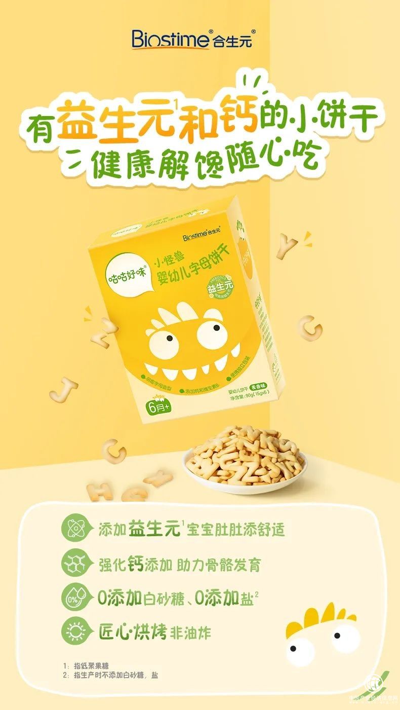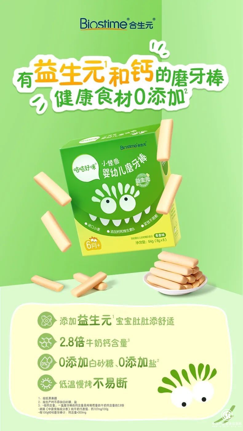 合生元作為專注母嬰健康的全球領先品牌,此次合生元咕咕好味嬰童系列零食的亮相,深度洞察新消費市場需求,首先切入大品類餅干和溶豆賽道,覆蓋多年齡段需求,創新打造多款嬰童腸道健康零食。