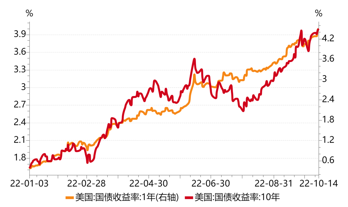 圖4 1年期和10年期美國國債收益率走勢