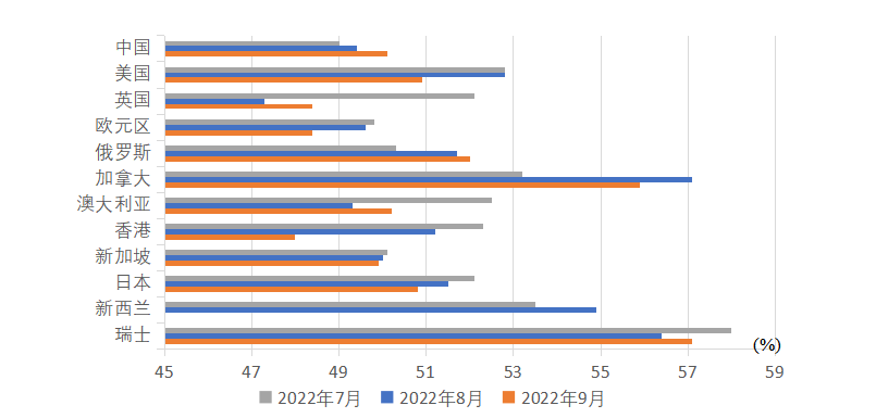 圖7 2022年三季度各國制造業PMI變化