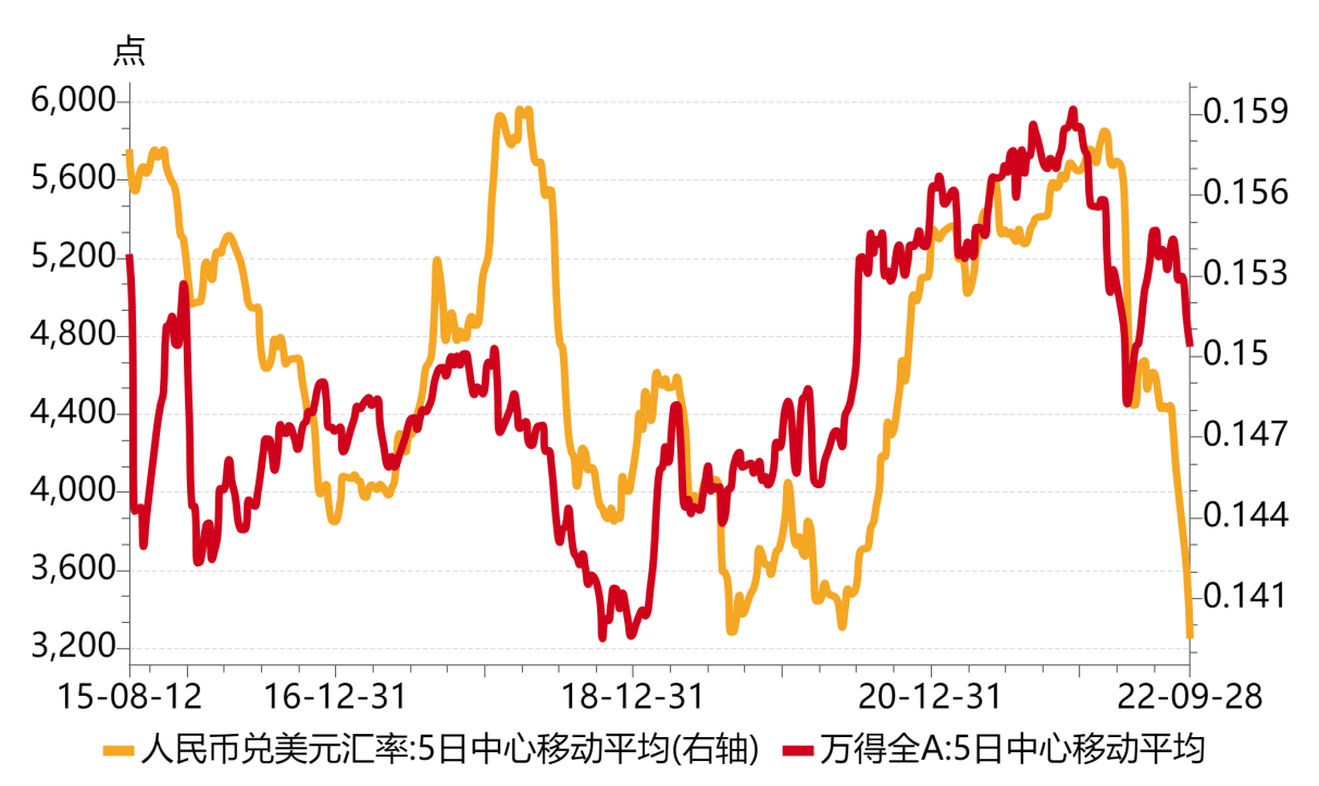 圖9 人民幣匯率和萬德全A走勢