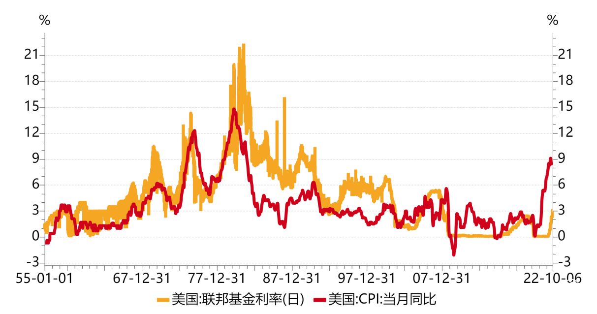 圖8 美國聯邦基金目標利率和CPI同比走勢