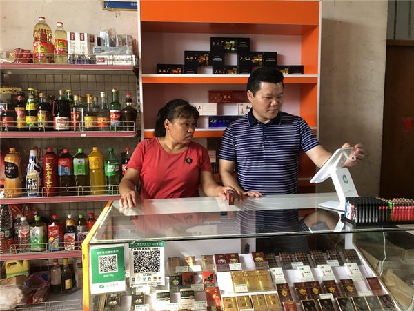 村委幫助羅覃寶夫妻兩聯系了環江毛南族自治縣煙草專賣局和當地的漓泉啤酒經銷商。在村委的咨詢和環江煙草的指導下,羅覃寶依法申領了煙草專賣零售許可證。漓泉啤酒經銷商也為了幫扶羅覃寶,為他向廠家申請了批發代理的經營權限。就這樣,羅覃寶的小店打開了卷煙零售和啤酒批發的進貨渠道。卷煙的配送上門服務以及煙草公司客戶經理的進戶拜訪服務,讓足不出戶的羅覃寶懂得了卷煙銷售知識。啤酒的區域批發代理也讓羅覃寶得到更實惠的貨源供應和活動獎勵。