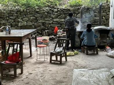 圖:煙農正在烤房邊做飯