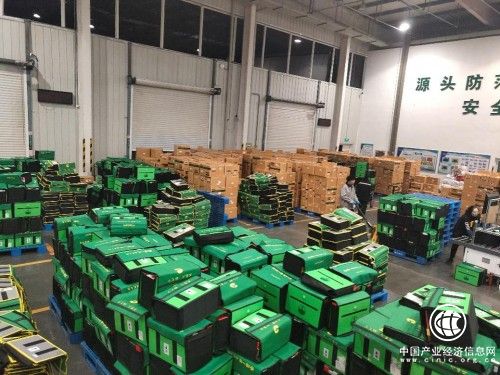 圖為分揀裝箱完畢的綠色周轉箱