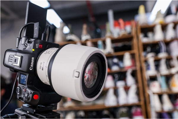 匡威直播間的改造案例,也適用于大部分服飾、鞋靴品類的直播間。佳能(中國)“佳直播”項目經理趙英俊先生進行了本次的改造心得分享:“在一場直播中,服飾的面料和色彩跨度非常大,選擇一款高動態范圍的攝影機非常重要,這次匡威直播間選擇了EOS R5 C這款數字電影攝影機,讓產品質地和顏色還原更準確,畫面更扎實。同時,通過進行分區均勻布光,可以讓商品顏色在主播的移動展示中保持一致的色彩。此外,我們發現LED背景在服飾類直播間的運用越來越普及,建議燈光的光心避開LED屏幕來提高畫面的對比度。”