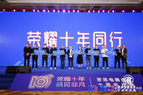 十年的成就,離不開浙派電器家人們與合作伙伴們的努力與支持,現場頒發卓越功勛獎、優秀服務門店獎、人氣旺鋪獎、業績狂飆獎、A級戰略合作伙伴獎等表彰。感謝合作伙伴們一直以來與浙派電器風雨同舟、共闖難關,展望未來繼續攜手共進,共創輝煌。