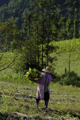 圖:村民正在收獲煙葉