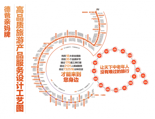 為了企業良性有序的發展,四川德親國旅開啟了“中老年高品質旅游標準化體系”的建設。制定了“十八大安全生產標準流程圖”、“高品質旅游產品設計制造標準工藝流程圖”、 “高品質旅游管家帶團服務標準流程圖”、 “高品質旅游產品操作標準流程圖”、“高品質旅游產品包裝工藝流程圖”等系列標準的制定工作。將構建高品質旅游的工作內容細節化、可量化、標準化,為重新構建旅行社行業高質量發展的健康秩序盡一份企業的力量。