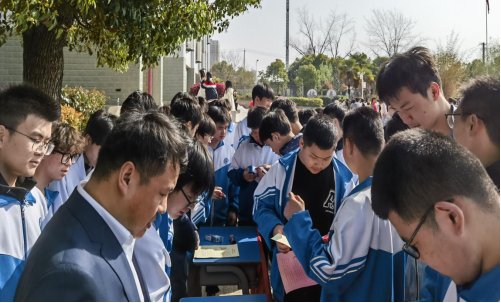 (圖為工作人員在黃陂區職業技術學校開展宣傳活動)