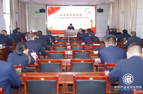 圖為“黨建宣講員”為全體黨員上政績觀專題教育黨課