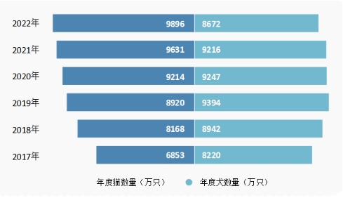 2017-2022年中國寵物貓犬數量