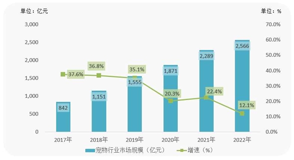 2017-2022年中國寵物行業市場規模
