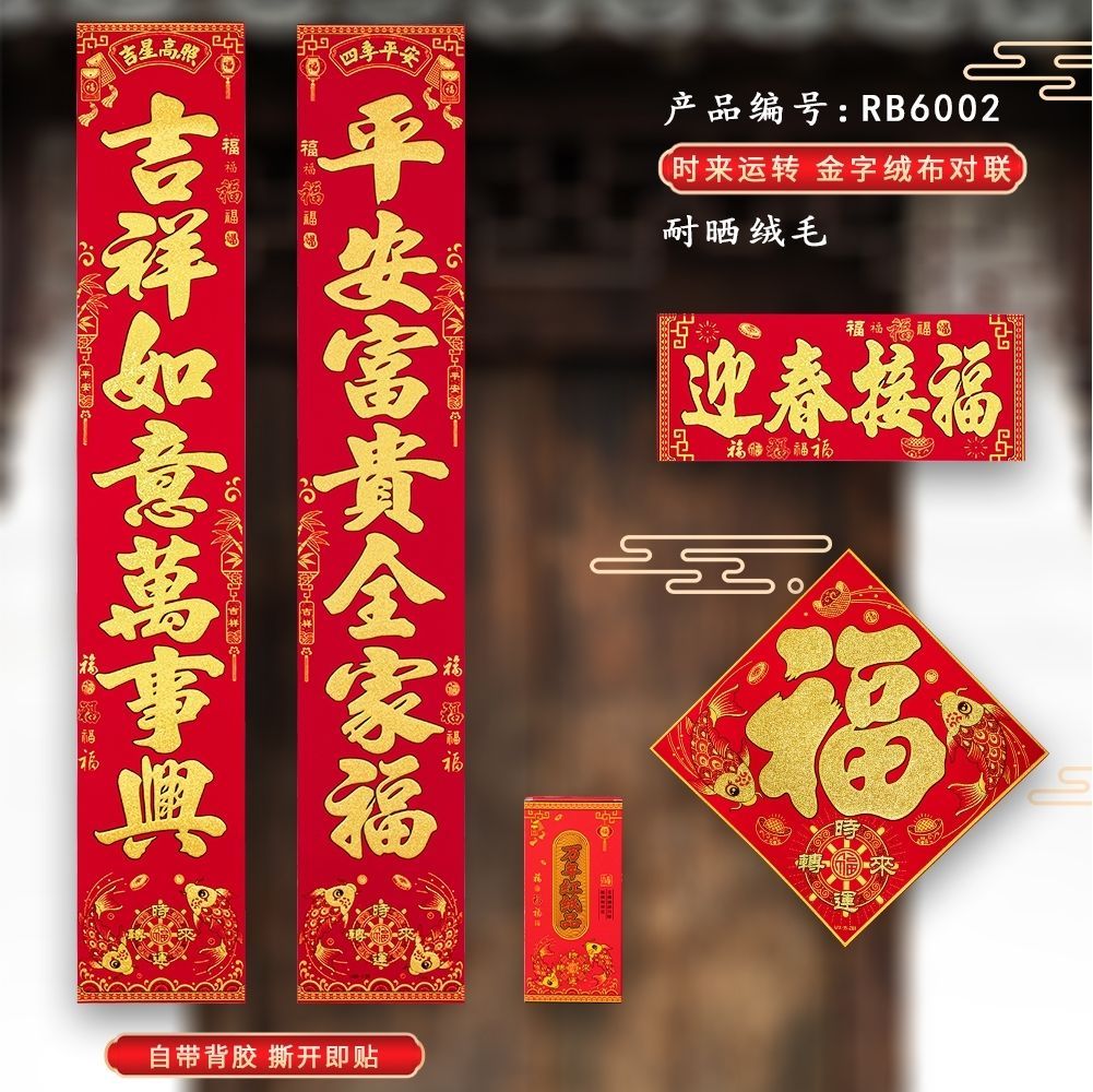 因此,相比于傳統銅版紙制對聯,絨布對聯在東北已然占據“C位”。富年達絨布對聯,選取具有一定厚實度的優質絨布,更加耐用耐損耗,不易褪色,更加環保。大紅的絨布搭配上經過十幾道發泡工藝制成的金字,一抹端莊傳統吉祥的“中國紅”,一個個閃耀立體的金色大字,是對“年味”最經典的詮釋,也是對新的一年滿滿的憧憬與祝福。