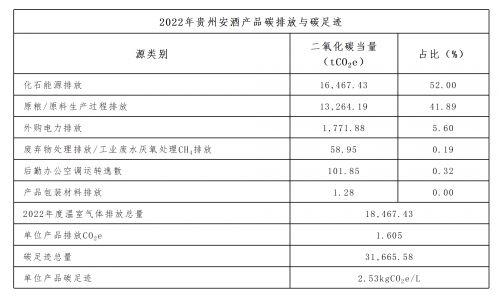 報告中重點闡述了其成員企業貴州安酒在醬酒生態釀造與綠色發展中的實踐。作為植根于赤水河醬酒核心產區的貴州兩大歷史名酒、貴州省首批“生態釀酒企業”、貴州省“綠色工廠”,貴州安酒堅持與自然環境和諧共生的信念,將“感恩自然,低碳循環,清潔生產,綠色發展”作為生態環保核心理念,堅持綠色生產,恪守5個100%,全方位落實能源計量管理,開展溫室氣體排放與碳足跡核算,并主動融入貴州“國家生態文明試驗區”建設發展大局,積極推進百億赤水酒谷建設。數據顯示,2022年,貴州安酒固體廢棄物排放量37,293.08噸,廢窖泥、廢曲草、廢酒糟已經實現100%生態化資源化利用。污水處理、沼氣處理變廢為寶,實現年發電量超120萬度。