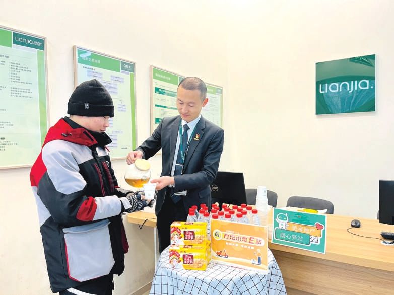 北京鏈家月壇北街店響應月壇街道號召,開展“驛站總動員 點亮暖心地圖”關愛活動,為快遞小哥、外賣小哥等新就業群體提供暖心支持