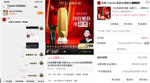 另一方面某些頭部美容儀品牌在各大博主直播間以低價“清庫存”的方式拋售。其中以色列家用美容儀品牌,某T首當其沖,博主直播間的價格與官方旗艦店的價格相差5-6倍,堪打“骨折”。