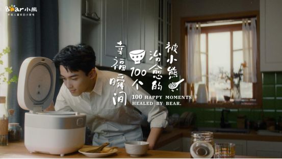 比如由代言人吳磊演繹的《被小熊治愈的100個幸福瞬間》TVC,小熊電器就深入辦公、宅家、社交等生活語境,為年輕人帶來情緒治愈。正如片中所表達,也許繁雜的工作讓人焦頭爛額,也許手機里不斷蹦出的信息讓心不得安寧,但當看到小熊電器養生壺“咕嚕咕嚕”燉煮的那一刻,捧起一杯礦物質即飲熱水的那一刻,雜糧電飯煲把飯煮好提示聲響起那一刻,一切煩惱皆會撫平,生活總是充滿暖暖的治愈感。