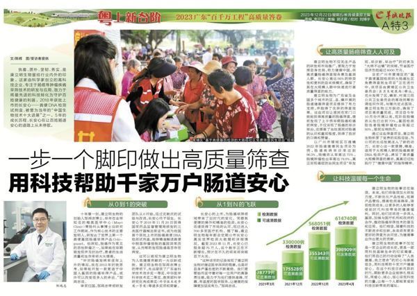 目前廣州市黃埔區的“基于糞便基因檢測的大腸癌社區免費篩查民生項目”正在進行中,該項目由黃埔區公共衛生委員會(區衛生健康局)牽頭,充分發揮了區、鎮街、村居三級公共衛生委員會的高效統籌協調組織作用,與轄內定點醫院、康立明生物三方聯動,確保了項目高質量完成。項目自今年10月份開展以來,現階段腸鏡依從性已達到73%,基因檢測陽性者腸鏡腫瘤檢出率超過80%,居民反響熱烈。