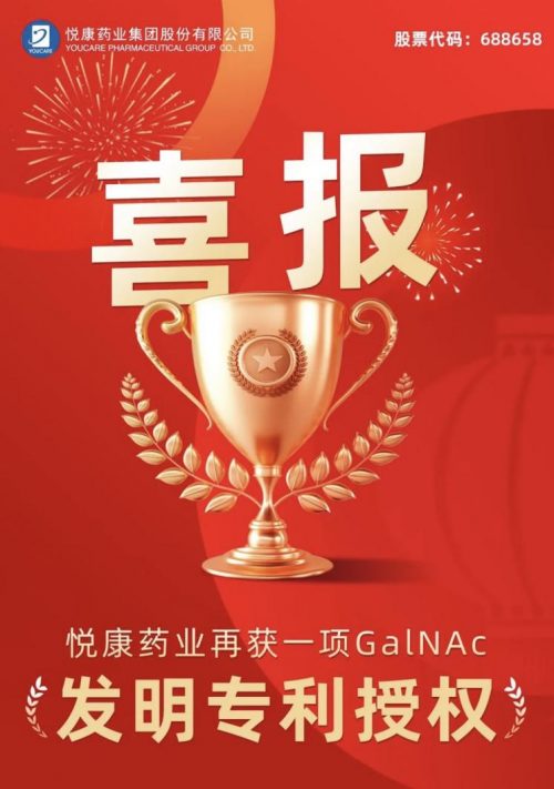 這項專利是悅康藥業GalNAc遞送平臺繼前期《新型GalNAC化合物及其硫代寡核苷酸綴合物和偶聯方法》專利被授權之后的又一重要突破,也是悅康藥業在核酸藥物遞送領域獲得的第10項發明專利授權,為公司在核酸藥物領域的研發提供有力的技術支持和保障。