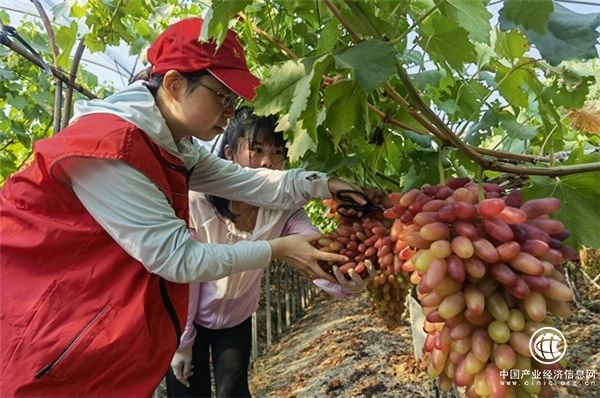 志愿者們根據農戶的要求,遂即分配各自的任務,將一串串葡萄剪入果籃中。