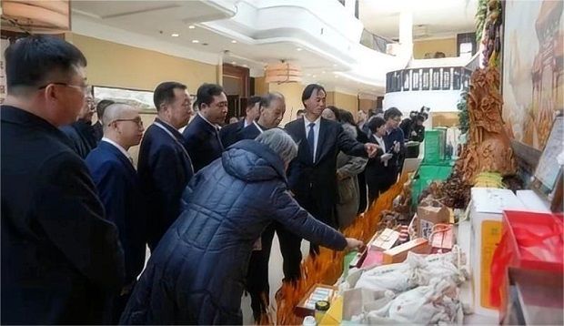 推介展廳,五寨縣甚喜茶園食品有限公司、山西正道良田農業股份有限公司、山西康宇田源農業股份有限公司、五寨縣匯豐貿易有限公司、五寨縣晉粒康貿易有限責任公司、山西牛氏博文醋業有限公司等十余家企業攜帶新品參與展銷。琳瑯滿目的農特產品吸引了許多嘉賓觀看購買。在品鑒會現場,五寨的特色健康美食五寨莜面窩窩、黑肉燴菜、涼粉、紅蕓豆罐頭、瓜籽、高粱醋、醬油、羊肉、新研制的易拉罐毛健茶、甜糯玉米等引起嘉賓濃厚興趣。隨著推介官和企業家的宣介,現場品嘗,給所有嘉賓留下深刻印象和美好回味。場內場外,深層交流、互通信息、洽談合作,將品鑒會推向高潮。栩栩如生的非遺木雕作品吸引不少嘉賓駐足觀看,活動現場氣氛熱烈。