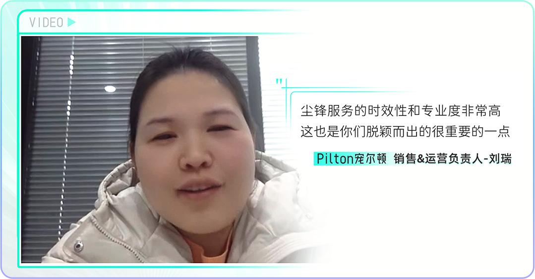 Pilton寵爾頓的銷售&運營負責人劉瑞表示:“塵鋒服務的時效性和專業度非常高,這也是你們脫穎而出的很重要的一點”。