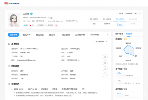 其實對于人才最大的尊重,就是將他們配置在最合適的崗位動蕩中,盡可能發揮他們的最大潛能。而用友人才發展系統可以智能識別候選人的簡歷內容,將其解析為基本信息、雇主標簽、職能標簽等六大項、十四類人才標簽,進行人才畫像的繪制。最后,系統會基于兩方畫像進行自動匹配,給出候選人與崗位的匹配指數,幫助HR第一時間捕捉到合適的候選人。