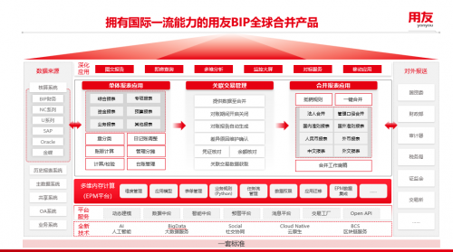 用友BIP全球合并產品在數據集成、賬務系統應用、合并報表等方面具備強大能力,通過九個一的特點支持企業合并報表的要求。
