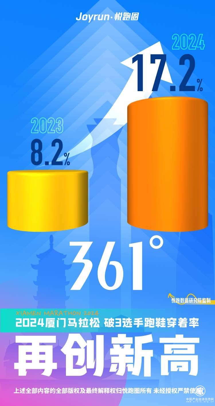 1月7日,2024廈門馬拉松(以下簡稱廈馬)在廈門國際會展中心鳴槍開賽。受近年來我國路跑事業發展加速影響,本次賽事跑者成績提升顯著。其中,中國領先的體育運動品牌361°在賽事當中表現出色,第三方媒體數據顯示,361°跑鞋破3跑者穿著率從去年的8.2%飆升至17.2%,實現翻倍增長。