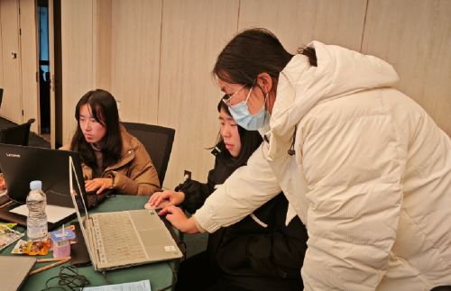 圖為青年黨員彭榴靜(右一)正在和小組成員研究QC課題。