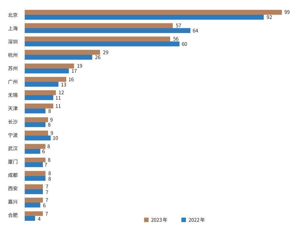 圖2 2022年和2023年新經濟TOP500城市分布